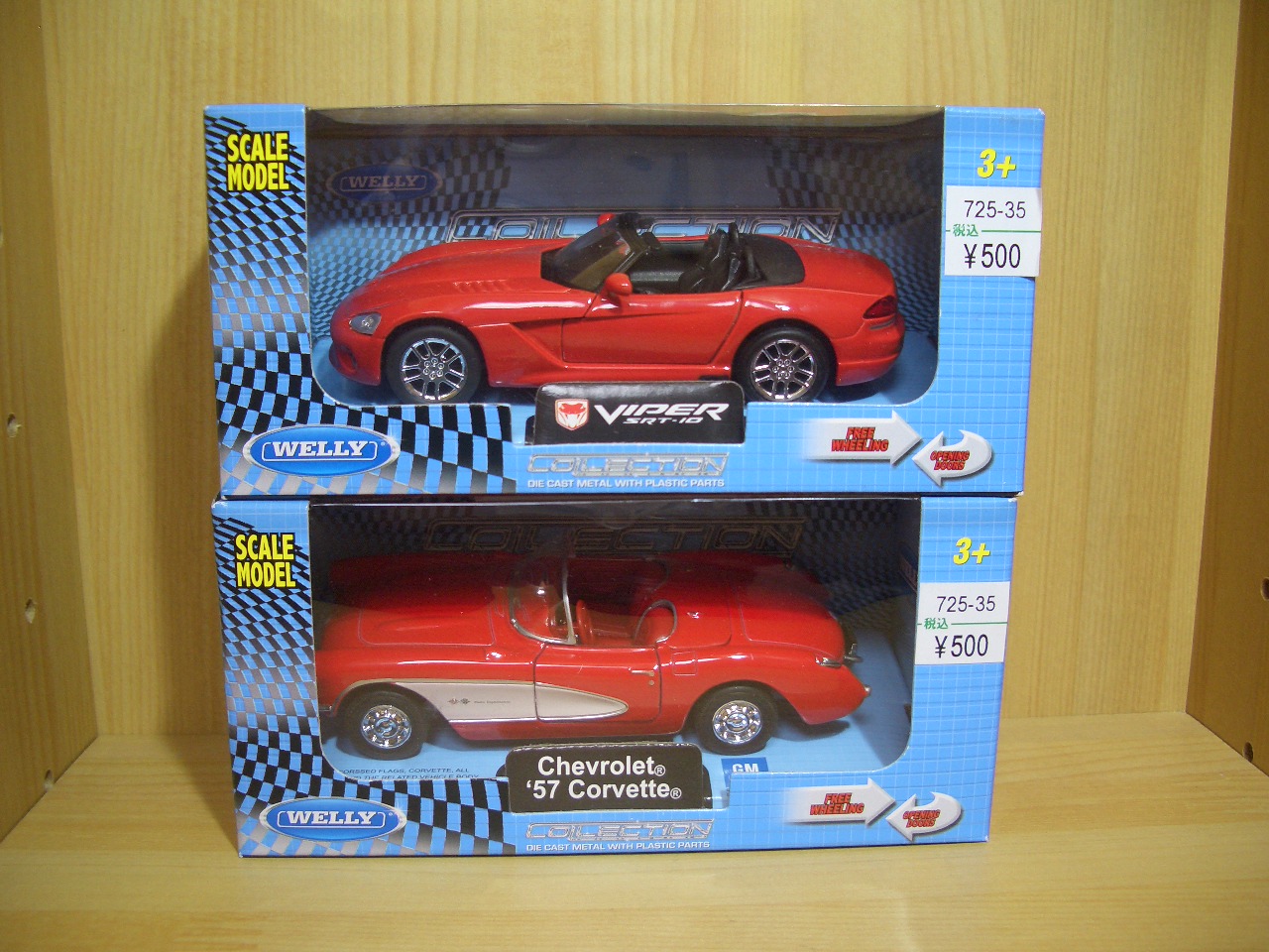 以前にも購入した〇大の1コインで購入できるWELLYのワールドコレクションミニカーシリーズの’57シボレーコーベットとダッジ・ヴァイパー?